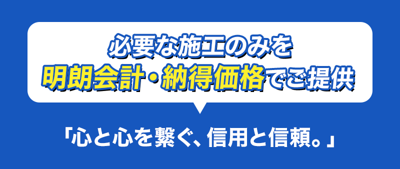 必要な施工のみをご提供し明朗会計・どこよりも納得価格で修理をいたします。