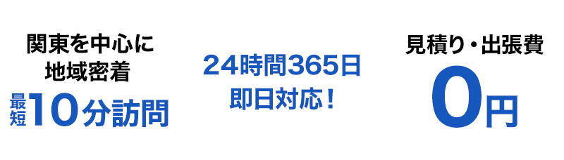 365日、即日ご対応いたします。関東エリア地域密着型のため最短10分で伺いますのでご安心ください。