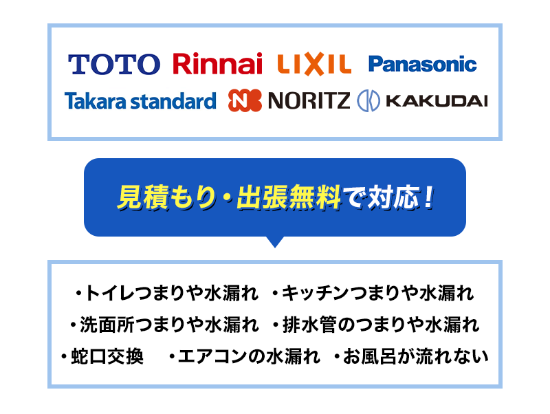 出張・見積もり・基本料金は無料なので経験豊富な職人が調査し、トラブルの状況を確認しお伝えします。本当に壊れている判断できない場合でもまずはお気軽にご相談ください。